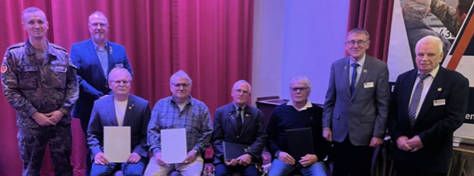 Unter anderem stand die Ehrung langjähriger Mitglieder auf der Tagesordnung. Für 50 Jahre Mitgliedschaft wurden Oberstleutnant a.D. Jürgen Wappler und Stabsfeldwebel a.D Hermann Krumsiek geehrt, für vier Jahrzehnte Mitgliedschaft Oberstabsfeldwebel a.D. Thomas Neumann und Stabsfeldwebel a.D. Ronald Mally.
